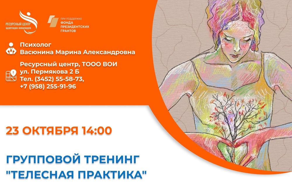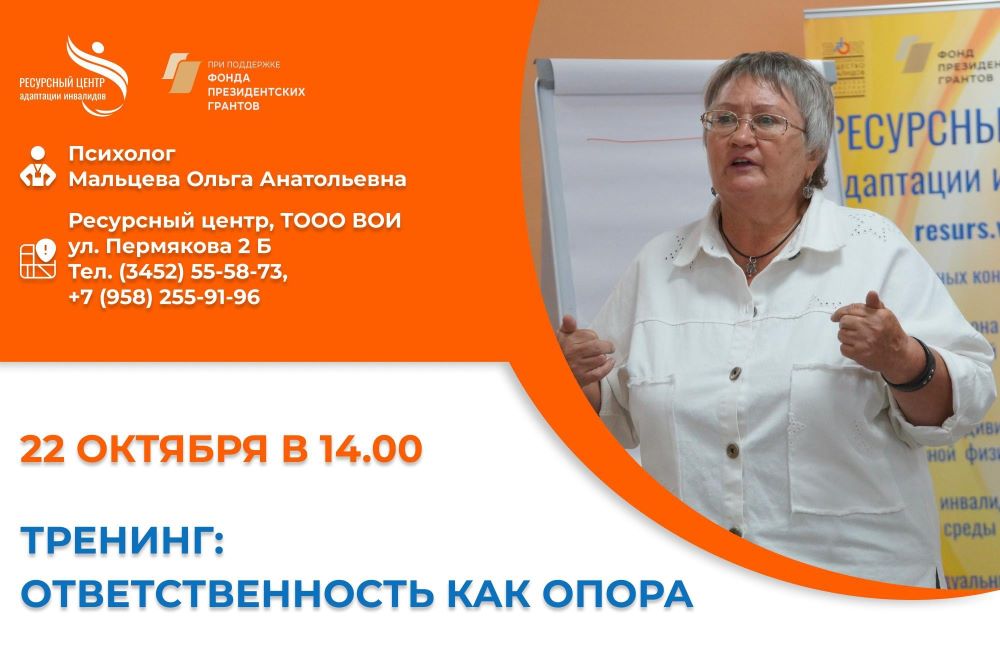 Ресурсный центр адаптации инвалидов приглашает людей с инвалидностью и членов их семей, с 18 лет и старше, 22 октября в 14.00 на очередную встречу из цикла «Внутренняя опора».
