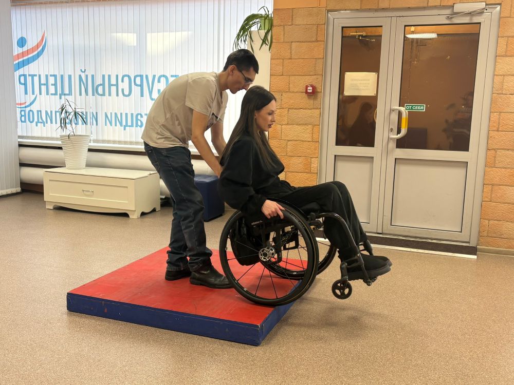 В Ресурсном центре адаптации инвалидов (ул. Пермякова, 2б) проходят практические занятия по активному пользованию инвалидной коляской.