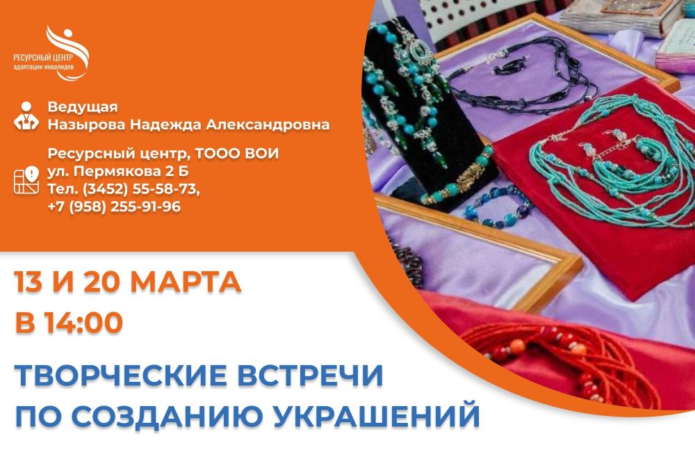 Ресурсный центр адаптации инвалидов приглашает людей с инвалидностью, с 14 лет и старше, 13 и 20 марта в 14.00 на творческие встречи по развитию мелкой моторики.