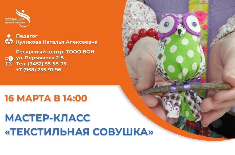 В Ресурсном центре адаптации инвалидов 16 марта прошёл мастер‑класс по созданию текстильных игрушек!