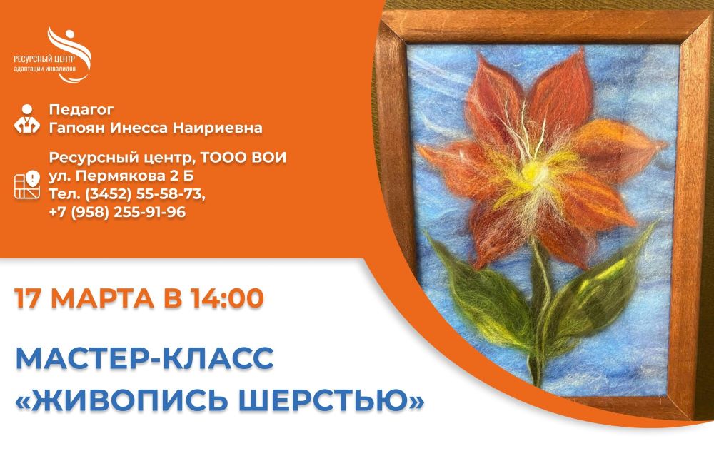 17 марта на площадке Ресурсного центра адаптации инвалидов состоялся мастер‑класс по декоративно‑прикладному творчеству «Живопись шерстью».