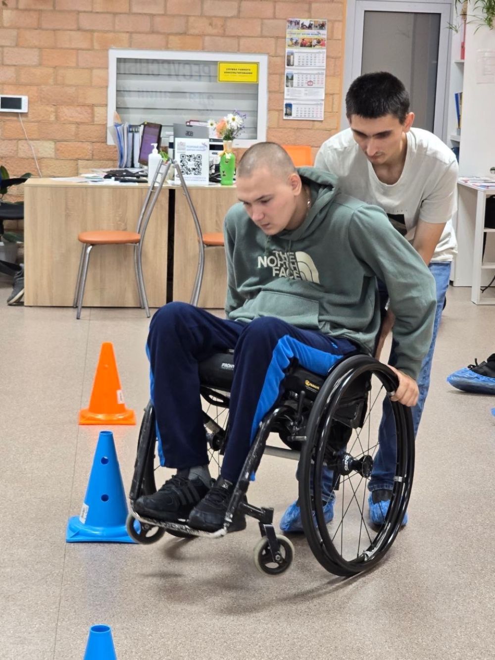 В Ресурсном центре адаптации инвалидов (ул. Пермякова, 2б) проходят практические занятия по активному пользованию инвалидной коляской.